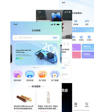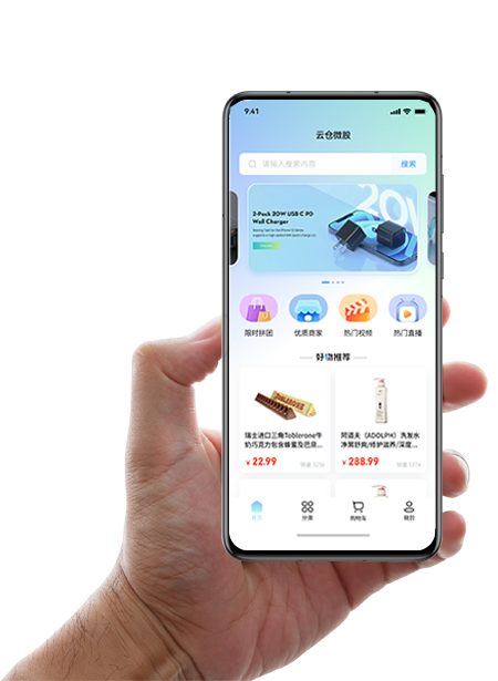 云仓微股APP是一款集购物、短视频、直播推广、金币兑换和拼团逻辑于一体的综合电商平台。
